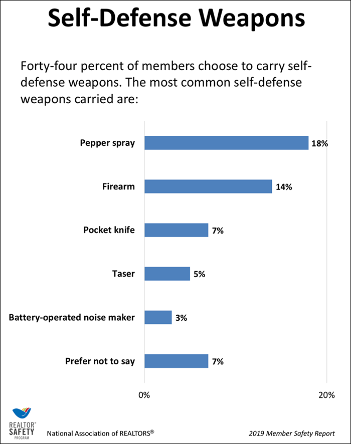 - Arm yourselves. There are many different weapons to choose from. They range from retractile sticks to guns. Many people do not believe in the necessity of a firearm. I have heard many stories of female Realtors surviving attacks because they had a gun. Florida has a five day waiting period and you will need a license to carry the firearm.